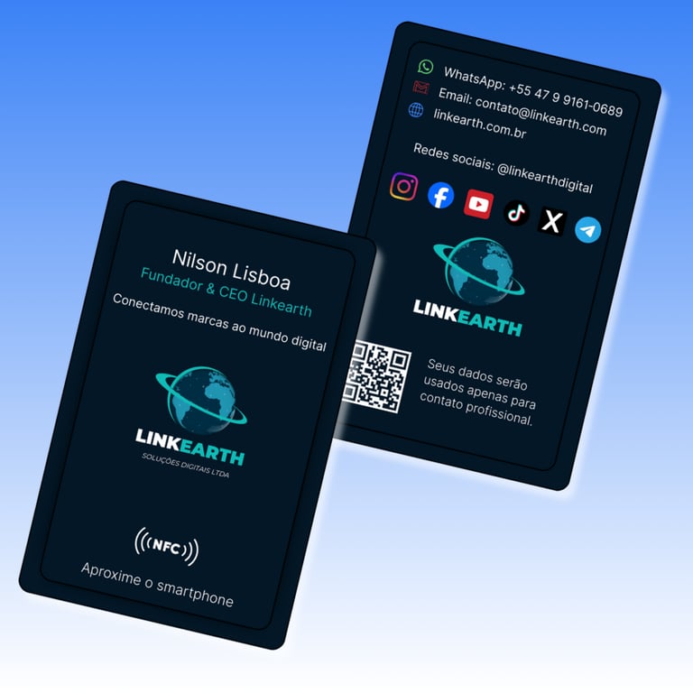 💳 Linkearth card – Conecte contatos com um toque (versão NFC ou link direto).