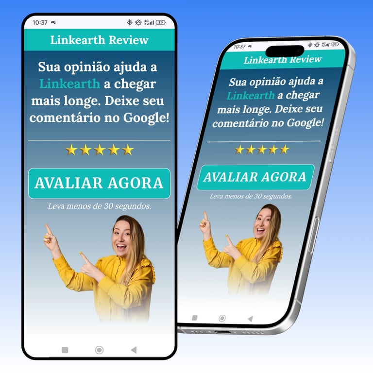 Não deixe sua imagem ao acaso. Com o Linkearth Review, você usa a tecnologia NFC/QR para captar avaliações positivas no Google Maps em tempo real. Transforme clientes satisfeitos em imãs de novos negócios.